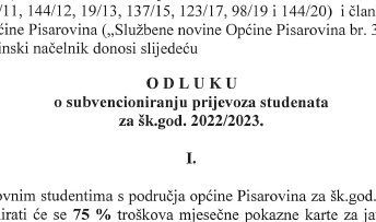 ODLUKA o subvencioniranju prijevoza studenata za šk.god. 2022-2023.